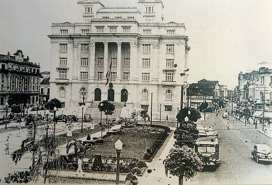 O Palácio José Bonifácio e a Rua General Câmara, em meados da década de 1940: