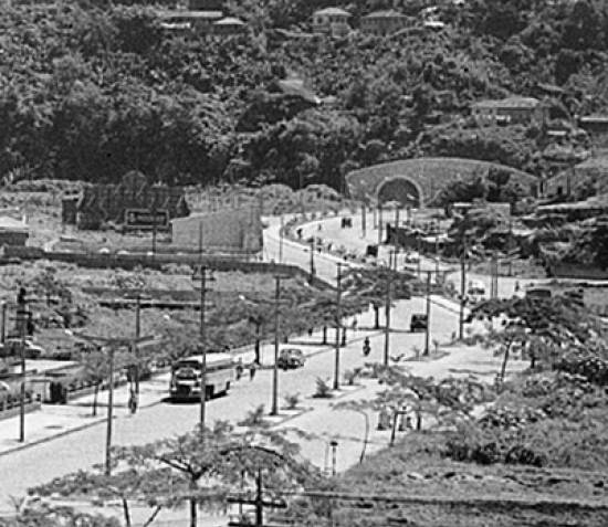 O túnel, visto pelo lado do Centro, pouco depois de sua inauguração: