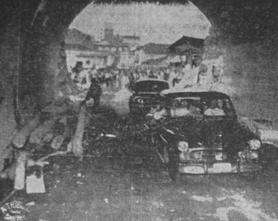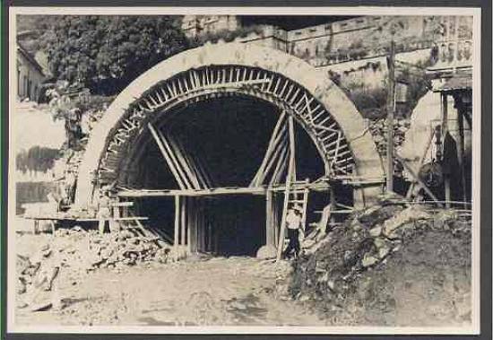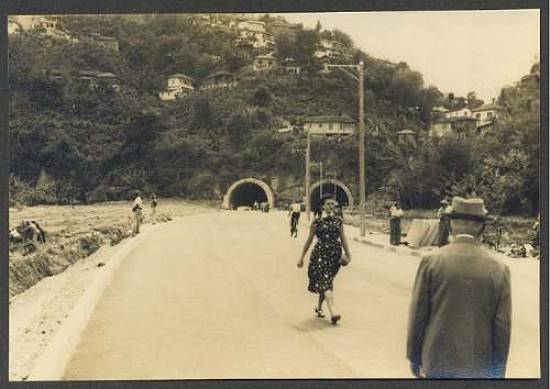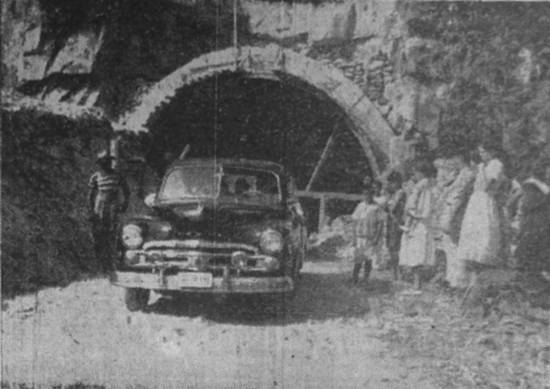 A abertura em 1955 do "túnel da direita" foi registrada neste postal fotográfico de
