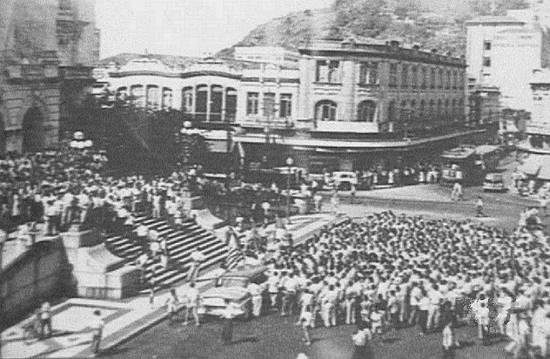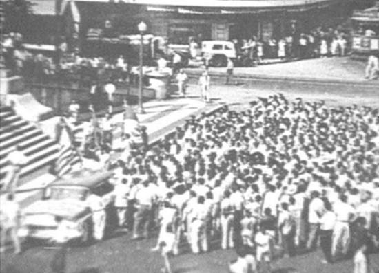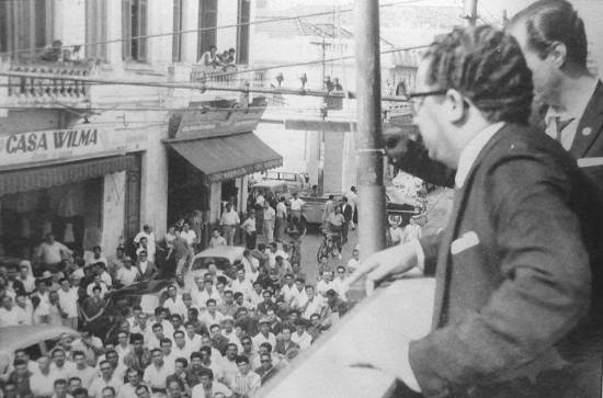 com direitos políticos cassados. São dessa época as imagens a seguir, quando uma manifestação pública na Praça Mauá,