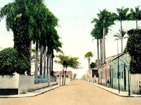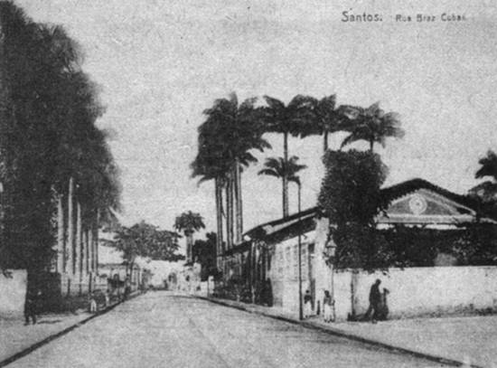 Antes do início (em 1914) do conflito que seria conhecido como a Primeira Guerra Mundial do século XX, Santos era uma cidade pacata, concentrada ainda no trecho Valongo-Paquetá, mas já iniciando a ocupação da zona Leste da ilha, em direção às praias. É desta época este cartão postal, mostrando a Rua Braz Cubas:
