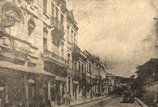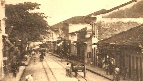 chamada de Rua dos Açougues, teve ainda os nomes de Rua do Campo e Rua Áurea. Um dos sobrados à esquerda, ainda existia em 1954; as primeiras casas, à direita, correspondem hoje à área ocupada pela