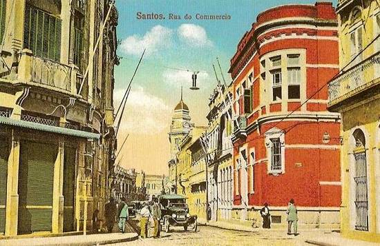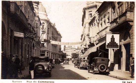 Em cartão postal enviado em 1933, a "Rua do Café", assim conhecida por concentrar inúmeras firmas exportadoras do produto, agências de navegação, escritórios de