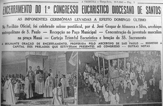 êxito que marcou o 1º Congresso Eucarístico de Santos, que, disse, "deu ensejo a que a mocidade mariana demonstrasse a sua ardente fé na religião".