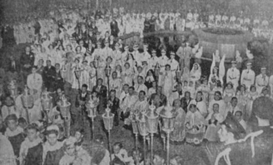 que seguiram, com a devida contrição, todo o cerimonial da igreja católica, num grandioso espetáculo, como nunca foi levado a efeito em nossa