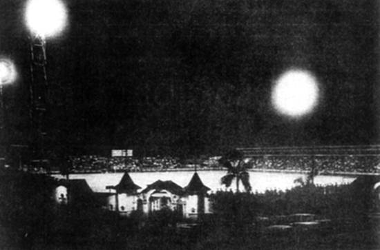 - da iluminação noturna em seu estádio, o Santos Futebol Clube ganhou a condição de realizar jogos à noite. A foto dessa