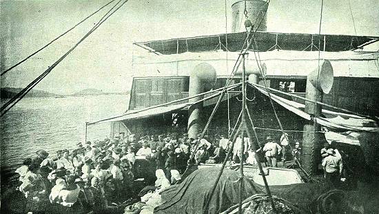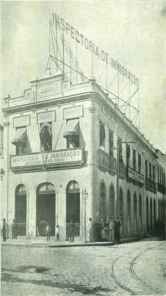 das instalações da Inspetoria de Imigração em Santos e da chegada de imigrantes ao porto: