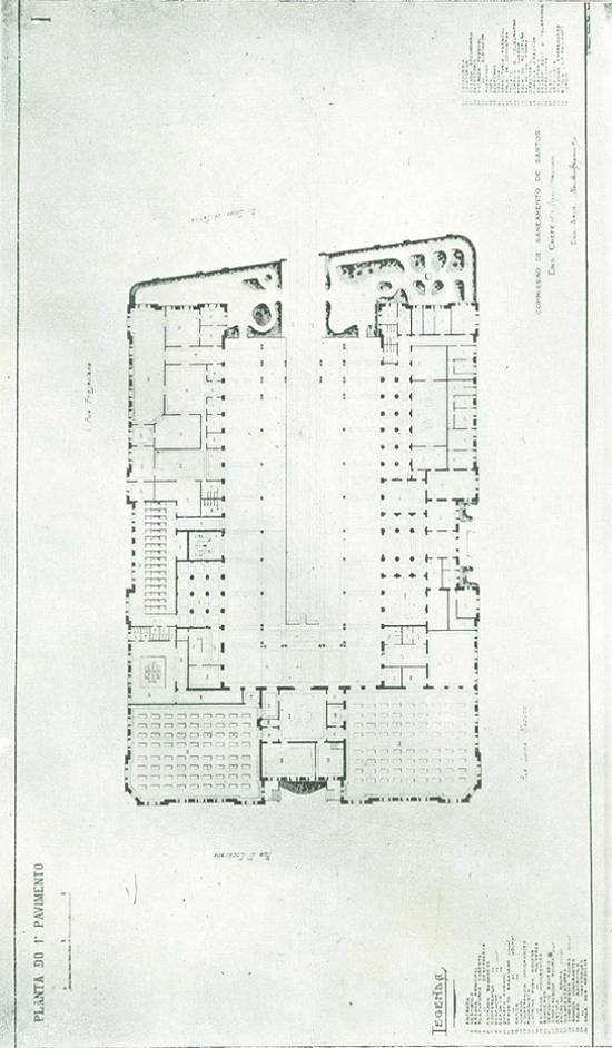 Planta do primeiro pavimento - Projeto da Hospedaria de Imigrantes de Santos