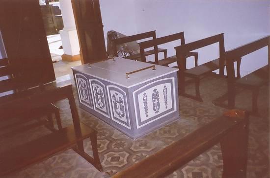 Eça funerária na capela do Cemitério do Paquetá, única peça remanescente do século XIX