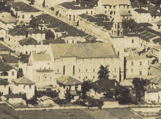 Vista desde o Morro Santa Therezinha, em direção ao porto, a cidade por volta de 1940 ainda mal passava do Embaré, em direção à