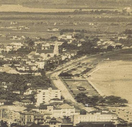 Voltando ao centro da imagem original, neste detalhe que tem na parte inferior a Avenida Bernardino de Campos (canal 2), vê-se o terreno da Praça Coronel Fernandes Pacheco,