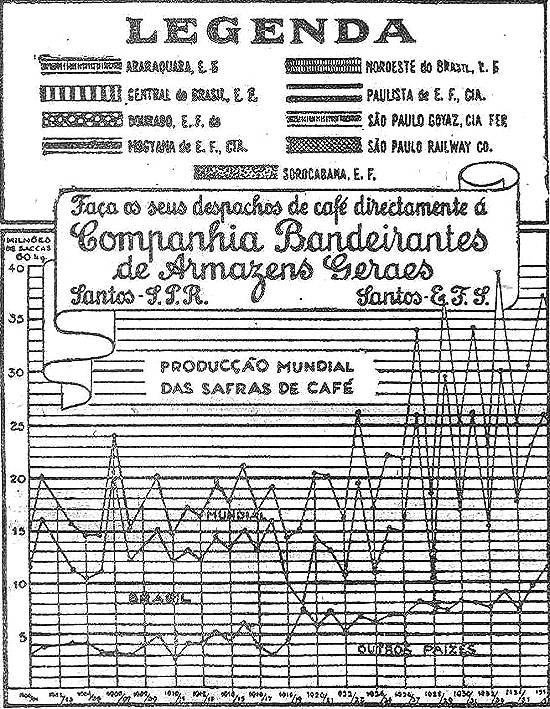 ensacamento dos cafés para exportação. A Cia. Bandeirantes de Armazéns Gerais destacava, num anúncio de página inteira