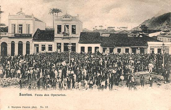 pioneiramente comemorado em Santos, dando o exemplo ao Brasil, que em 1902 aprovou no Congresso um projeto do deputado Sampaio Ferraz, e em 1903 registrou festejos pela data no Rio de Janeiro. O cartão postal com foto de