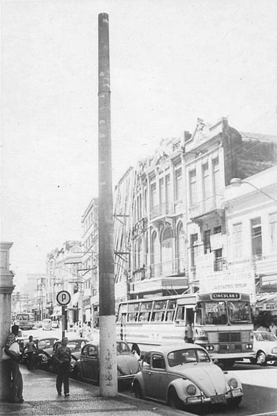 Poste sem finalidade, bem ao lado do prédio da Prefeitura, na Rua General Câmara