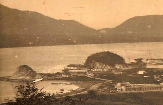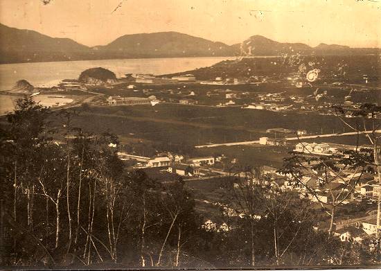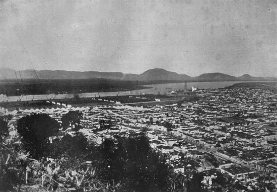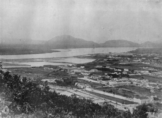 Vista de Paquetá aos Outeirinhos, tirada do alto do Monte Serrat, durante a construção do cais, em 1910: