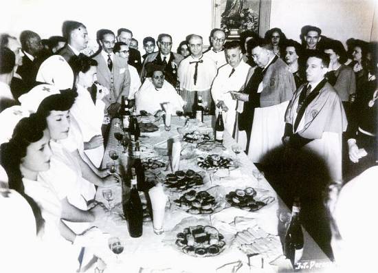 D. Idílio José Soares recepciona as enfermeiras brasileiras que participaram do esforço de guerra, na Segunda Guerra Mundial, em 1945, no consistório da Igreja do Rosário