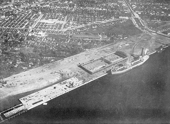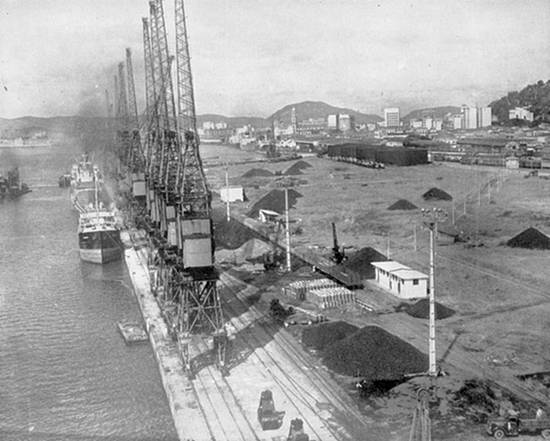 Trecho onde operam os navios de longo curso, vendo-se no ângulo formado pelo Cais o