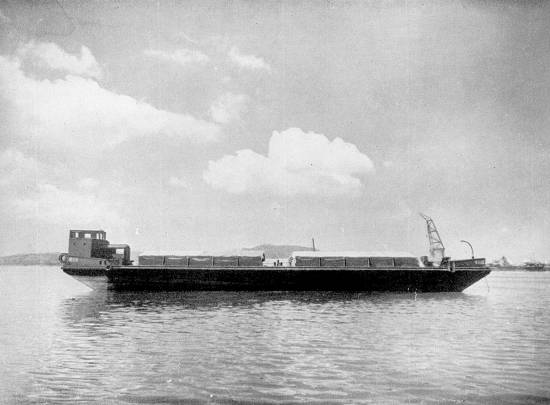 Chata de aço, da capacidade de 265 toneladas, empregada nas operações de carga e