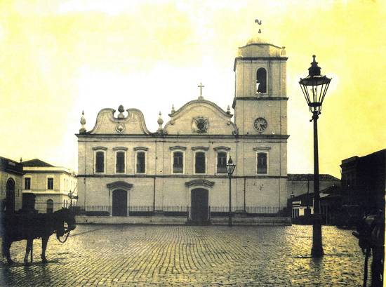 Fachada da antiga Matriz da Praça da República, em princípios do século XX