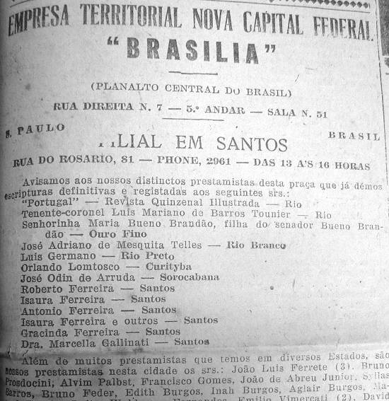 Além de muitos prestamistas que temos em diversos Estados, são nossos prestamistas nesta cidade os srs.: João Luis Ferrete (3), Bruno Prosdocini, Alvim Palbst, Francisco Gomes, João de Abreu Junior, Syllas Barros, Bruno Feder, Edith Burgos, Inah Burgos, Aglair Burgos, Manuel Pereira Leite, Waldemar Fernandes, Emilio Vimercati (2), David das Neves, Seraphim Antonio da Costa, A. Guilherme Gonçalves, Antonio Cantreiras Cabellos, Abel Rosa, Manuel Ferreira, Arnaldo Ferreira de Aguiar, Palma Angerani, Victorino Rodrigues, Francisco Levato, Antonio Neme Cozman, Vicente Alonso, dr. Pedro Paulo de Giovani, Servando Feijó Noceda, Luiz Alves de Carvalho, Orestes Caparica, Juvenal Buzano, Joaquim Ferreira Souto, Luciano Pupo Nogueira, Leon Bouché, Arthur Seddon (2), dr. Luis A. Vidal, Lucien Rodolpho Martins, Nestor Barbosa Ferraz, dr. Luis A. Vidal, Henri Paul Roussen, dr. Luis A. Vidal, José Benito de Rivera Berguela (5), Benedicto Vieira, José Abelardo Monteiro de Barros, Eduardo Magalhães Hafers, Luis Suplicy (2), Roberto Nioac (2), Henrique Hafers (2), Tito Domingos Rodrigues, João Magalhães Hafers, Simão Maxta & Irmão, André Simões Costa, Ralpho Araujo Alvim, José Odtiz, Maria Jesus Jorge, Francisco Garrote Ramos, João Vicente, Douglas Gordon Stwart, José Simões, Nioac & C. Ltda., Alberto Fomm, dr. José Rodrigues Simões, Maria Conceição do Espirito Santo, Olegario Ortiz, Sylvio Gabos, Miguel A. Rocha Corrêa, Hermenegildo Rocha Brito, Jorge Chamas (2), Antonio dos Santos Filho, Luis Ratto (2), Delmira de Jesus (2), Malatias Abad, Antonio Domingos Pinto, dr. Gastão Ayres, Pedro Baptista Fonseca, Durval Damasceno, Jocelyn de Oliveira Trindade (2), Segismundo Joseph Rangel, Henrique José Rodrigues (2), Pedro Villaverde, Sebastião Alves da Cruz, Marcellino Mariano, Miguel Aquim & Crambalian, Carlos Vieira da Cunha, Filippe José Dabus, Amleto Alvisi, Oswaldo Pereira da Cunha, J. Villani & Filho, Manuel Furtado de Oliveira, Joaquim Cavalcante Raposo, Joaquim Carrilho, Henrique José Rodrigues, José Pedro de Sousa Amarante, Manuel Rodrigues, José Pimenta da Silva, Albano Augusto da Fonseca (2), Francisco Ribeiro Leite, Nicacio Costilhas, Manuel Joaquim Dias, Adelson Barreto, Luis Augusto Rebello, I. A. de Caldas Filho, dr. Antonio Raposo de Almeida Filho, Faustino Ribeiro Leite, Alfredo C. de Oliveira e Álvaro Dias (2), Virgilio Augusto de Sousa, Abilio Fernandes, Avelino Lima Rodrigues, Polydoro de Oliveira e Filippe B. Aulicino, Fonseca; Spanghero & Migueroni, N. R. Santos & C., Nivio Ribeiro dos Santos, Carlos Caldeira, Joaquim Pereira Coelho, José Pereira Coelho, Joaquim Alaxerxes Coelho, Avelino Magalhães, Mario D. Leifert, Affonso Rios, Antonio Augusto Ramos, Antonio Fonseca Cabral, Bittar & C., Maria Adelaide Calvoza, Walter Josef Waeny, Frederico Magno Bittencourt, Francisco Lourenço Junior, Antenor Rodrigues Duarte, Juan Vicente Perez Rodriguez, Elfriede Hegner, Bruno Orsech, Estebam Jahrmann, Abrahão A. Jahjah, Antonio Gracioso, Angelo de Oliveira Santos, J. M. Nieto Conde, Maria de Lourdes L. Praça e Alfredo L. Praça, Antonio Gracioso (2), Zaki Farkuh, Othelo M. Marques, Nilo de Andrade Soares, João Bernardo Xavier, José Chancerel, Figueira & Irmão, Fernando Rodrigues & C., Alberto da Costa Barbo, Gil Rodrigues Junior, Sylvana de Jesus Sousa, Francisco Ramos Barbosa, Aurora Gonçalves, João da Costa Baptista, Elvira Henrique Baptista, Salomão Abuab, Isaac Auhab & Filhos, Alberto Abuhab, Abdul Rosa, Cremilda da Silva, Laercio de Azevedo, Marcial Ribeiro dos Santos, Antonio Ribeiro, Augusto Cesar Abreu, Reynaldo Mundel, Antonio Domingos Martins Sobrinho, Antonio Maria Peixoto, Antonio Vicente da Silva, Raphael Cutinhola, Carlos Gaspar, Ciríaco Gonzalez (3), Lincoln da Fonseca Leite, Carlos Herdade e Vicente F. S. Cruz, Antonio da Silva Aguiar, Francisco Rodrigues Porto, Salin Assaf, Luis Couceiro, José de Albuquerque Lima, Vicente Perez, Calvellos & Fernandes, José Gonzalez Lopes, João Siqueira, Manuel J. de Andrade e Manuel S. Vieira, Manuel Alonso Rodrigues, Augusto Corrêa, Antonio Gonçalves da Silva, Joaquim Simões & Irmão, J. Pinheiro, Oliveira & C.; Domingos Gonçalves, Manuel Nascimento Mello, Antonio Ferreira Bento (2), Dante Capuzzo, José Figueiredo, Adolpho Kantor, Joaquim de Oliveira Rezende, Joaquim Dias, Emenegildo Rodrigues Gatto, Oswaldo Ventura, Francisco Marques Ventura, João Simões Costa, Sabino A. Gabriel, José Augusto Moita, Seraphim Simões de Abreu, Domingos Lara e Luis Bernardes Lopes, Francisco Fernandes, Adelino Rodrigues Perez, José Ferraz da Costa, Edilberto A. Menezes, Antonio Bento Ferreira, José da Silva Fernandes, Avelino dos Santos, Eduardo Lopes, Luis Guiomar e José Moraes, Antonio José e João Alvares Perez, José Antonio Zuniga Canyoy, Manuel Moura, sra. Emilia Adan Valdez, sra. Ignez Adan Valdez, Manuel de Moura C. Soares, Benjamim Araujo Coimbra, Abrahão Jahjah, Paulo Mesquita de Carvalho, Américo Puglia, Luis Puglia Pomba, Joaquim Gaspar, José Luis Domingos, Manuel Marques Barcellos (2), Arthur Amado, Adolpho Kantor, Vital Estevam (2), Pedro Baptista da Fonseca, Alois Brummer, Manuel Caetano Marques (2), Domingos José da Costa, Manuel Quaresma Junior, Simão Matheus, Joaquim Simões & Irmão (2), Hygino Perez, Elyseu Forte, Joaquim Salgueiroza, Manuel Antonio Ramos, Abilio Tavares de Oliveira, Adelino Rodrigues, Affonso Marques Junior, Manuel Vicente, Giovani Toldi, Thimoteo Augusto Saraiva, Alberto Bitran, Manuel L. Praça e A. Yarkmann; Manuel Pouzada, Adolpho Kantor (3), José Pegas da Silva, Francisco Olivar, José Antonio Ferreira, Antonio Martins da Costa, Joaquim Martins Emprôa, Tristão Oliveira Rocha, Manuel Antunes, ANtonio Vicente, Christovam Marques Carvalhal, José Rodrigues, Luis Ribeiro de Castro, João Augusto Simões, Thomaz Marreiro Gonçalves, Luis Ribeiro de Castro (2), José Duarte, José Rodrigues Pereira, Luis Rivero Rua, João Vivian Alvarez, Franklin Alves de Moura, J