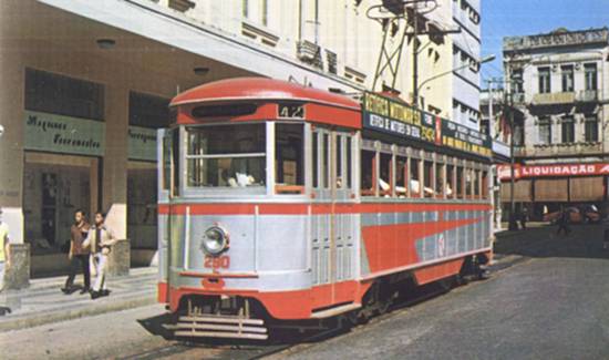 Bonde 42 passando em 1968 pela Rua Augusto Severo, defronte da loja Ferreira de Souza