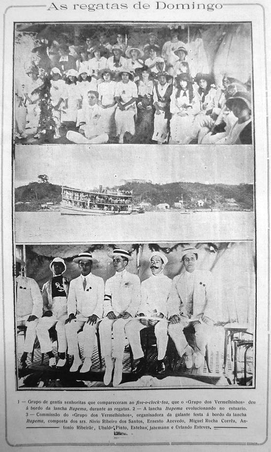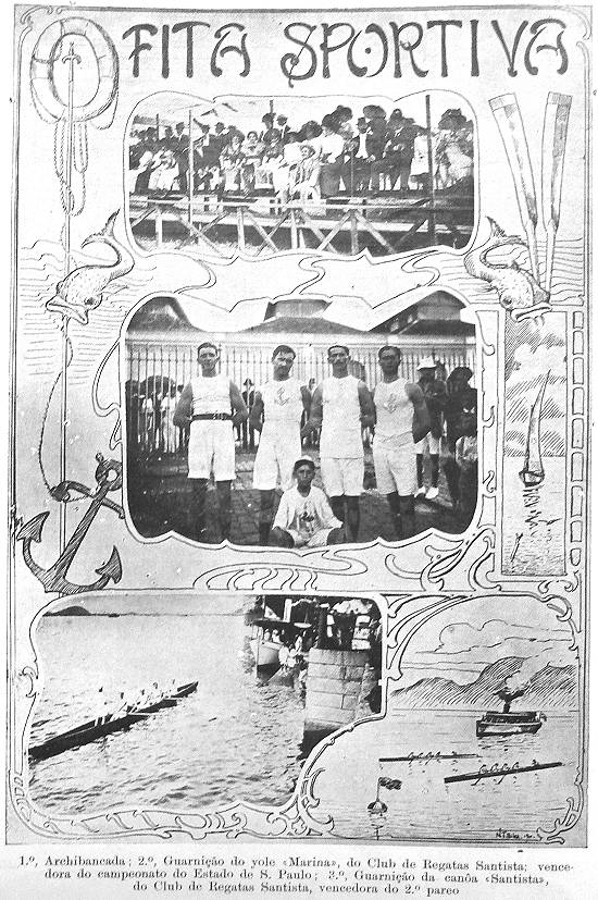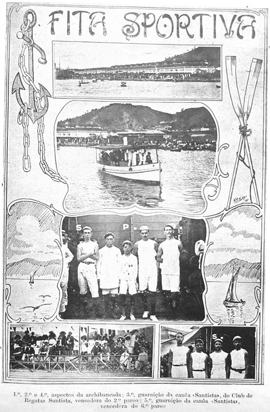 futebol, que então apenas começava, o grande esporte santista eram as regatas, com barcos a remo singrando as águas do Estuário velozmente, em
