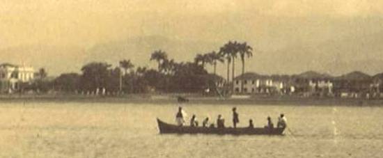 Movimentação de embarque e desembarque no hidroavião Savoia-Marchetti, na Bocaina