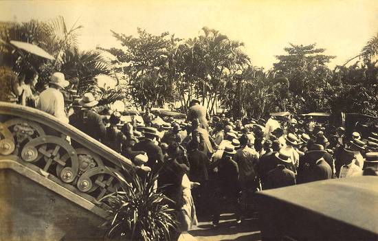 Autoridade sendo recebida nas escadarias do hotel Parque Balneário, em Santos