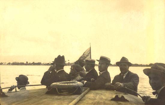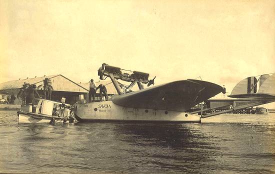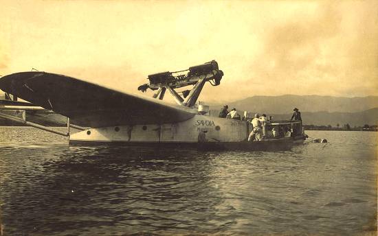 Autoridades visitantes deixam o Savoia-Marchetti, na embarcação a remo