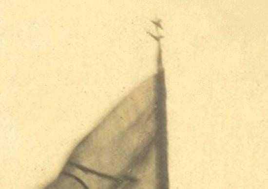 Detalhe da foto acima: na ponteira do mastro da bandeira da lancha, um símbolo islâmico