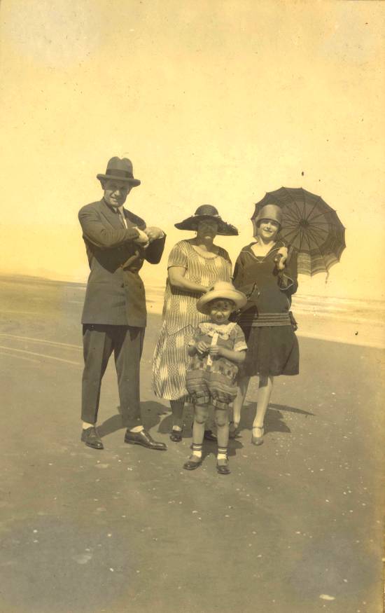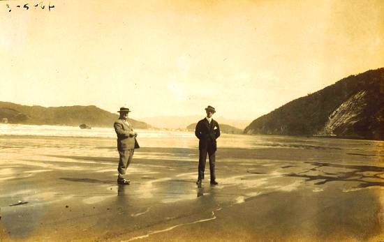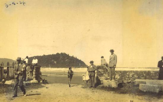 Passeio na praia do José Menino, ainda com restos da Pedra da Feiticeira, em 3 de maio de 1927