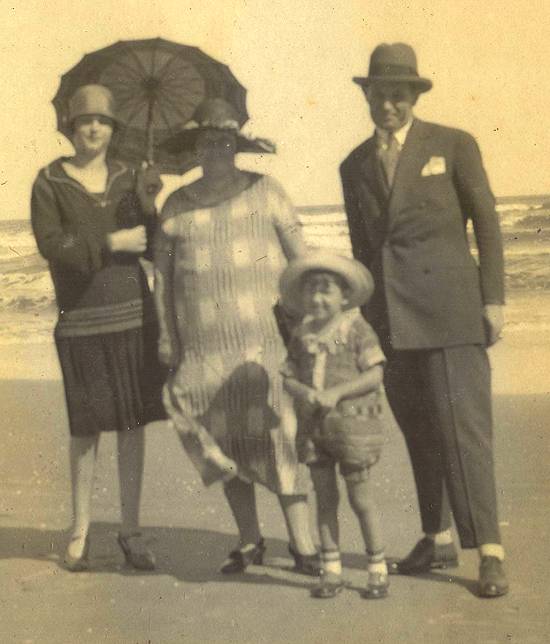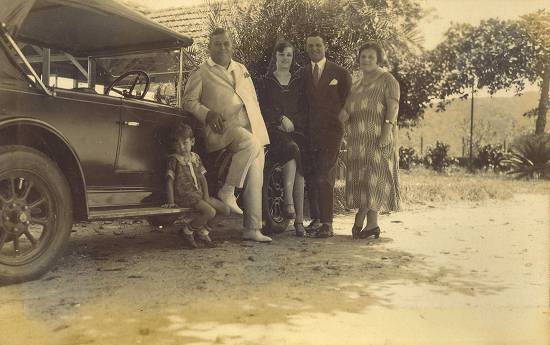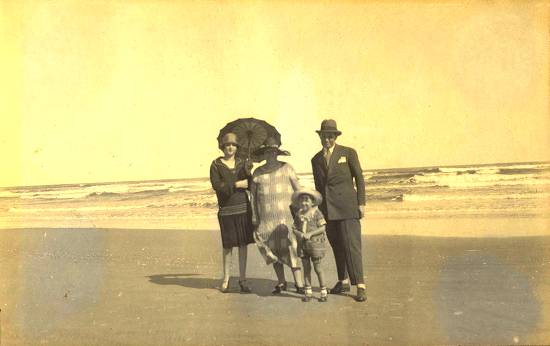 Passeio na praia do José Menino, em 3 de maio de 1927. Ao fundo, a Ilha Urubuqueçaba