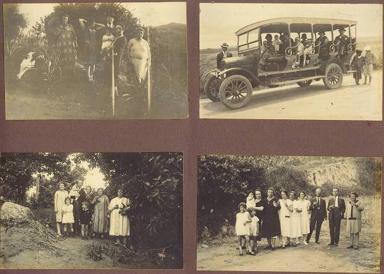 Muitas vezes, antigas fotos de interesse histórico para a comunidade podem estar esquecidas em álbuns de família, que acabam se perdendo ou sendo entregues a antiquários, sebos, quando não vão parar simplesmente no lixo. É o caso deste álbum, sem identificação de propriedade original, adquirido em um antiquário santista pelo pesquisador e professor Francisco Carballa, que cedeu suas imagens a Novo Milênio em agosto de 2008. Por algumas das fotos, como a do hotel Atlântico com sua fachada de 1922, é possível datá-lo como sendo aproximadamente do período até 1930. Já estas fotos, embora sendo da mesma época, não têm identificação que permita classificá-las, exceto as de um hotel visitado, possivelmente em Valinhos/SP:
