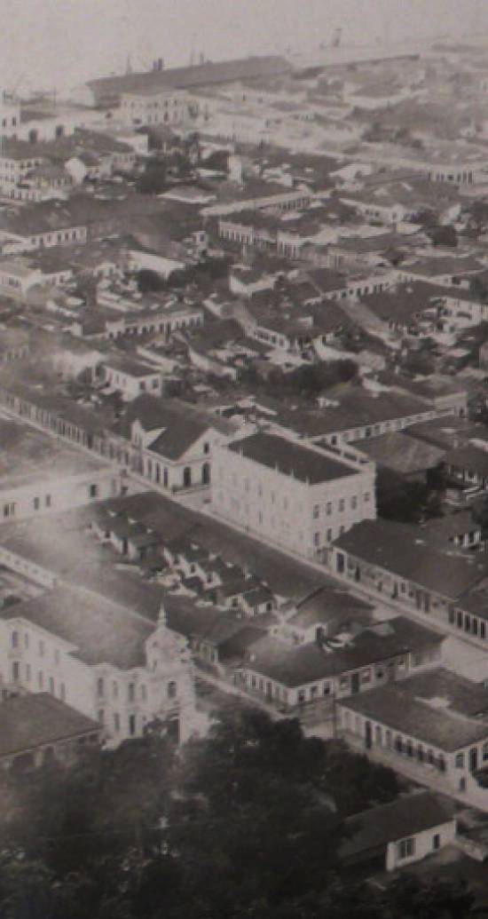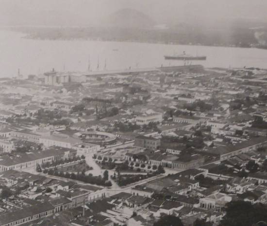 Paulo", a imagem, tomada do Monte Serrat, mostra o Centro de Santos, em direção ao Valongo. Na época, vale recordar que era comum o porto ser