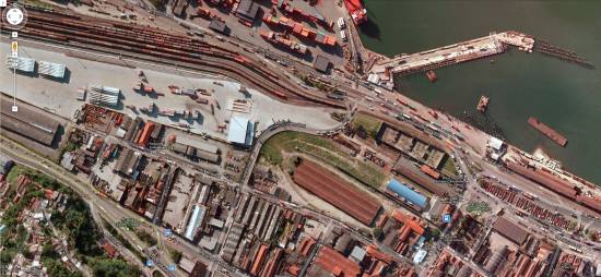 demolido (canto esquerdo inferior da segunda foto) e o novo trecho de cais já operativo (canto superior direito):