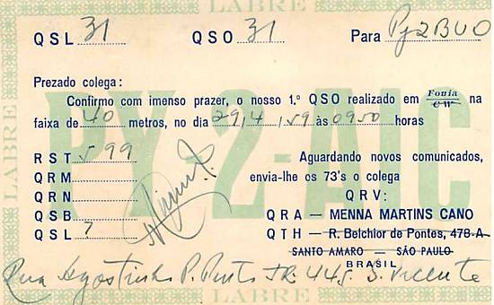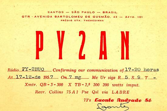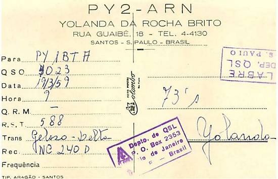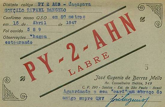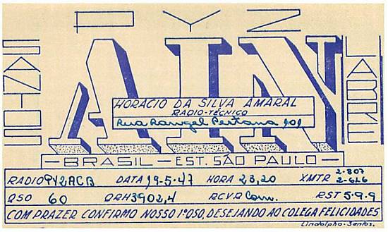 de contato radiofônico (QSO) com radioamadores santistas, nas décadas de 1940 e 1950, mantidas no Arquivo Histórico do Radioamadorismo Brasileiro