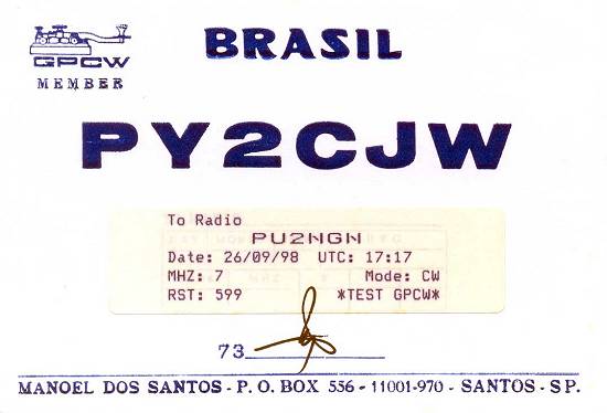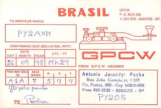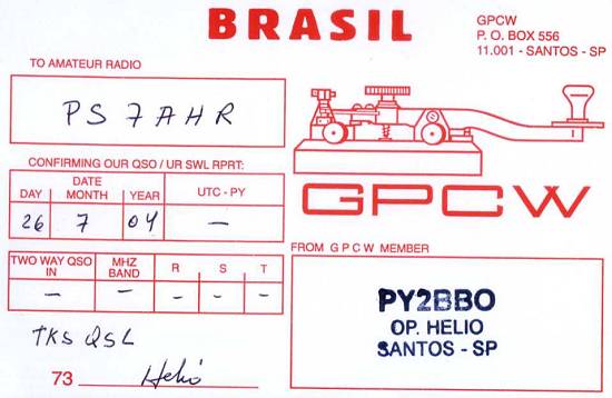 de contato radiofônico (QSO) com radioamadores santistas, mantidas no Arquivo Histórico do Radioamadorismo Brasileiro (acesso: 30/12/2012):