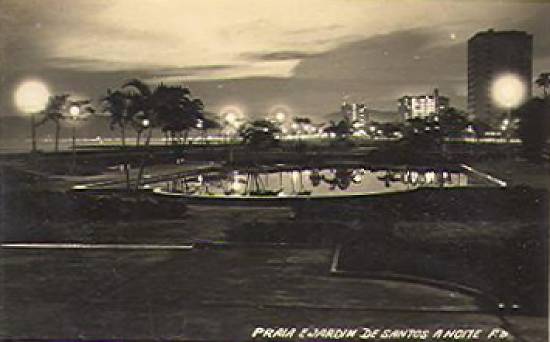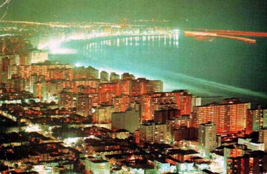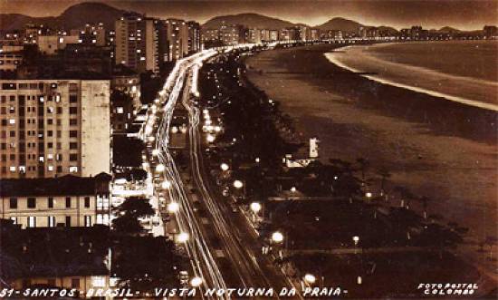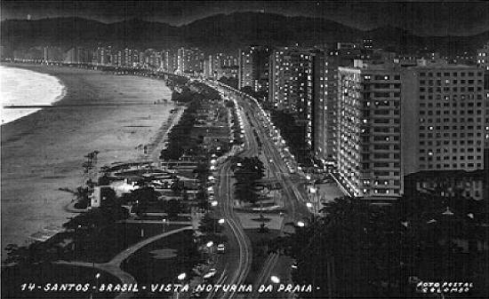 Por volta de 1970, uma vista de Santos e suas praias, pela madrugada: