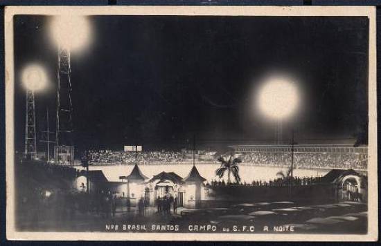 Esta foto é de um jogo de futebol, logo após ser inaugurada (em março de 1931) a iluminação noturna no campo do Santos
