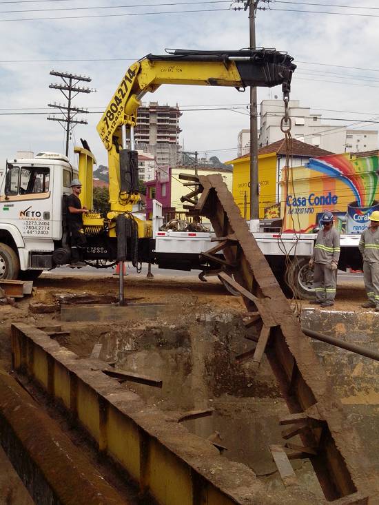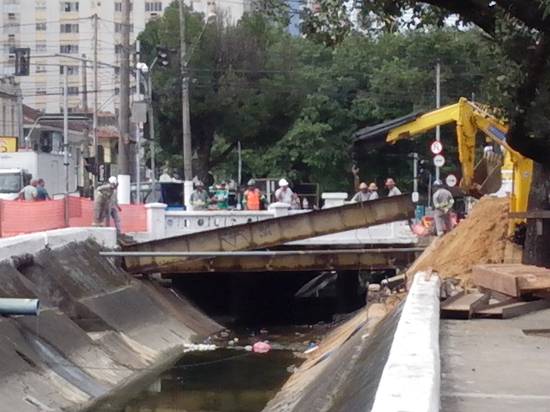No flagrante, o final do antigo pontilhão ferroviário sobre o canal 2 (Avenida Bernardino de Campos):