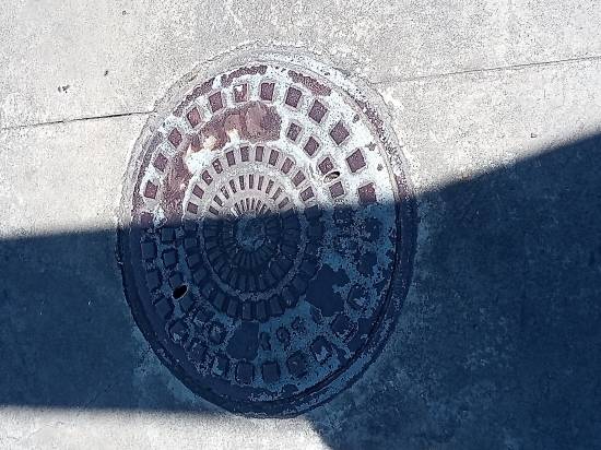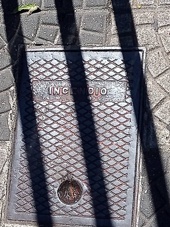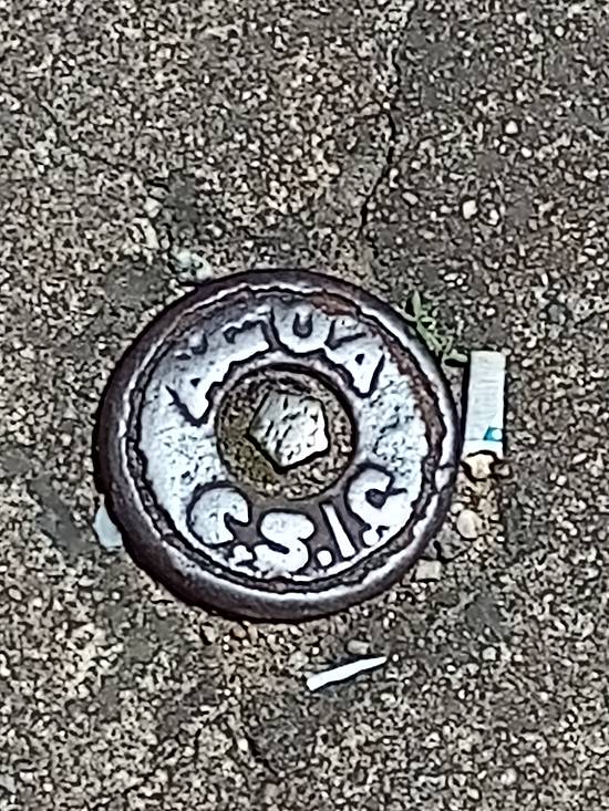 Tampão de poço de inspeção da antiga rede de gás que funcionou em Santos até a explosão do Gasômetro da Rua Pêgo Jr., na Vila Mathias, em 9/1/1967. A rede era mantida pela empresa Resrvatório de Gás da Cidade de Santos - Serviços de Eletricidade e Gás S/A, sucessora da empresa City neste segmento