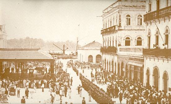 consular, autoridades civis, representante da imprensa santista, da Sociedade União Operária, professora da 3ª Cadeira Exma. Sra. D. Joana Machado de Macedo e suas alunas, e grande massa de povo.