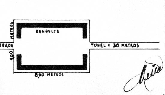 metros aproximadamente e totalmente calcetado. Uma banqueta acompanhava as paredes, e um túnel, por onde os trabalhadores penetraram cerca de trinta
