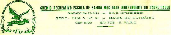 Papel de carta da entidade, fundada em 27/8/1974 e sediada na Rua N, 18, Estuário, em Santos