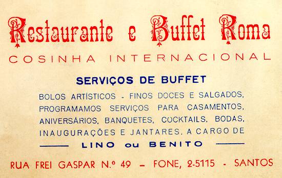 atendimento, que foi aprimorado, sendo em 1974 montado o Buffet Roma. O restaurante é procurado mais pela Classe A, embora os pratos mais preferidos