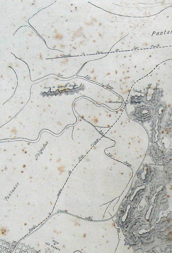 Esta planta de 1895 mostra o Rio São Jorge iniciando nos limites da então Vila de São Vicente e
