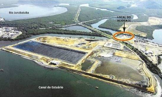 Solução do problema – De acordo com o gerente de produção da Odebrecht Infraestrutura, Giorgio Bullaty, o acidente ocorreu justamente com a intenção de não atrapalhar a atividade pesqueira. "Durante o processo de aterro para o encabeçamento de uma ponte, houve um rompimento e parte da lama marinha, que estava abaixo do local em construção, escorreu para dentro do rio". A ponte está em processo final de projeto e ligará a área administrativa ao canteiro de obras do Terminal da Embraport.