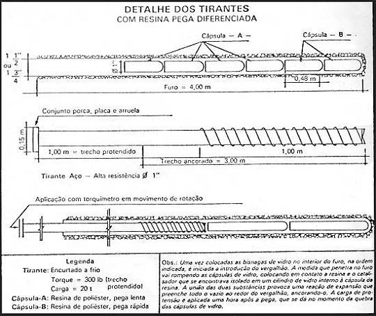 cm de espessura. O restante do reservatório recebeu apenas tirantes esporádicos em regiões de juntas ou diáclases (falhas da rocha).