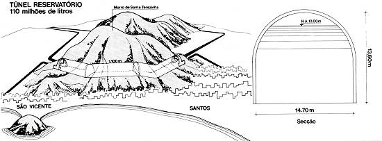 água: um túnel escavado na rocha. O projeto entrou em estudos mais detalhados já então pela Sabesp e, segundo o coordenador de obras da companhia na