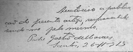 questão, é do punho do revdmo. padre Gastão de Moraes.